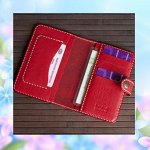Женская визитница-кардхолдер из натуральной матовой кожи бордового цвета. Имеет 9 кармашков для кар…