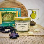 Бежевый комбоскини с серебряным медальоном (крестик) 925 пробы, Афон.