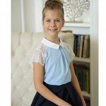 Нарядная блузка для девочки выполнена из текстиля нежно голубого цвета. Рукава длинные, кружевной н…