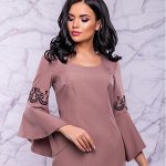 Цвет: кофе, розовая вышивка; Фасон: прямой,платье карандаш,полупритал,полуприлегающий,силуэтный,обл…