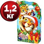 Сладкий новогодний подарок с изображением тигренка. Вес подарка 1,2 кг.