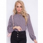 Блузка из тонкого текстильного полотна. Воротник стойка переходит в завязывающийся бант.