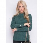 Блузка из плотного трикотажного полотна комбинирована рубашечным воротником на стойке.