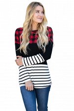Фиолетовый топ с голубым красочным принтом и длинными рукавами с полосатыми и леопардовыми вставками