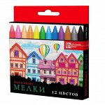Мелки восковые арт. 59087 / 24 ДОМИКИ (12 цветов (штук) в наборе, размер: 88х8 мм, форма корпуса: к…