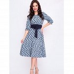 Платье из легкого текстильного полотна,отрезное по линии талии.Воротник стойка переходящий в бант…