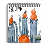 Скетчпад 168х195 мм, 48 л, блок - чёрная, серая, зелёная 120 г/м2, арт. 51528 КОТЫ /обложка полноцв…