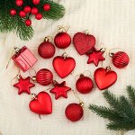Набор: да, цвет: красный, цвет: золотистый, диаметр шара, см: 3, в наборе, шт.: 14, рисунок: нет, м…