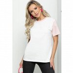 Трикотажная футболка в ярких летних оттенках с декором из страз. Прямой крой, цельнокроеный рукав…
