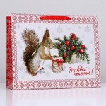 Размер: 42 см x 31 см. -. Стильный новогодний пакет с ламинацией используют как упаковку для подарк…
