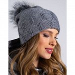 Шапка женская с вывязанным узором и помпоном из искусственного меха. Пряжа пр-во Италия с добавлени…
