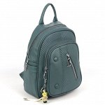 26 х 33 х 10 см. Женский рюкзак из матовой искусственной кожи сине-зеленого цвета, со съемным брело…
