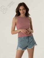 Женская майка (топ) в мелкий рубчик. Выполнена из высококачественного хлопка (кашкорсе) с добавлени…