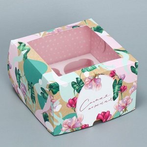 Дарите СчастьеКоробка подарочная складная переноска для цветов, упаковка, «Нежность», 20 x 20 x 4 см