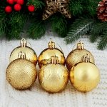 Набор: да, цвет: золотистый, диаметр шара, см: 5.5, в наборе, шт.: 6, материал:…