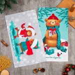 FoodVibesНабор новогодних кухонных полотенец Доляна «Время для счастья» 35х60см-2 штуки, 100% хлопок