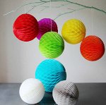 Подвеска объемная Шар соты 25 см бумага цвет желтый HS-26-16, HS-7-27