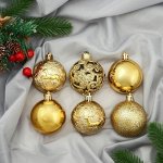 Зимнее волшебствоЁлочные игрушки, шары новогодние , пластик, набор d-6 см, 6 шт "Эмили узоры" золото