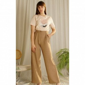 Брюки прямого силуэта на притачном поясе. По линии талии на передних половинках заложены по две одн…