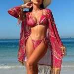 Раздельный купальник. Верх топ, регулируемые бретели. Низ трусики завышенной талии. Накидочка с цве…