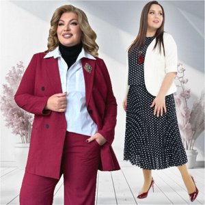 Костюм из мягкого материала состоит из удлиненного жакет…