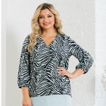 Блуза "топ" из эластичной блузочной ткани. Расцветка чёрно-бежевый принт на молочном. V-образный вы…