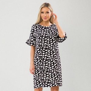 Платье прямого силуэта из трикотажа плотного. Расцветка белые вензеля на чёрном. Круглый вырез горл…