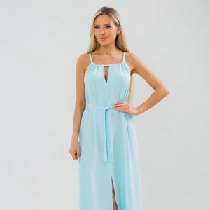 Платье свободного силуэта. Круглый вырез горловины. Цельнокроеный рукав, 65 см. Пояс на широкой рез…