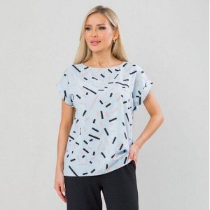 Комфортная блуза прямого силуэта из трикотажного полотна. Расцветка белый горох на голубом. Горлови…