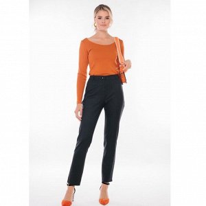 Модель брюк из темно-синей костюмной ткани в городском стиле. Спереди застежка на молнию и пуговицу…