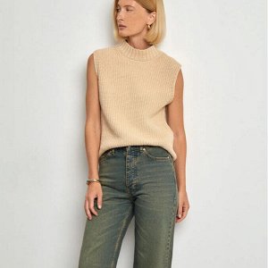 Вязаный жилет в бежевом цвете — приятная база в кэжуал-стиле. Материал состоит из хлопка, с минимал…