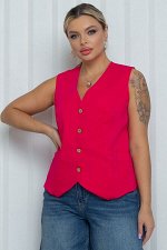 Жилет из ткани с льняной фактурой цвета фуксия.