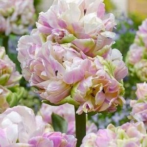 Кремово-белый, внешние лепестки с зелёной полосой, декоративная листва МНОГОЦВЕТКОВЫЙ + МАХРОВЫЙ