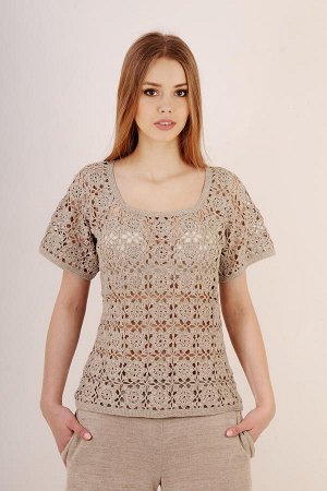 Женский жакет из льняной ткани. Круглый вырез горловины, 2 накладных кармана, застежка на пуговицы…