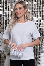 Блузка свободного силуэта из трикотажного полотна с блеском.Горловина и манжеты на рукавах отделаны…