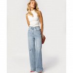 Джинсы-трубы в голубом оттенке выполнены из эластичного денима. Модел…