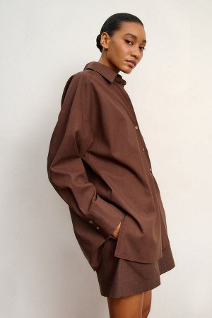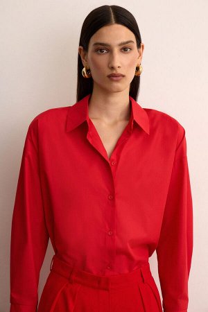 Яркая рубашка в главном цвете сезона. В составе — 92% хлопка и 8% вискозы. Свободная модель с кокет…