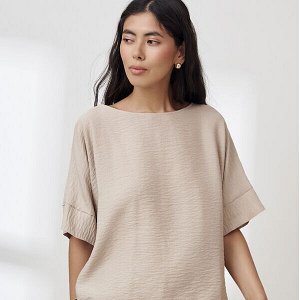 Цвет бежевый Брюки прямого силуэта из костюмной ткани. Пояс притачной с эластичной резиной.