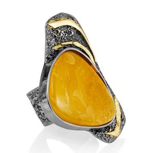 Стильное серебряное кольцо с круглой вставкой из натурального искрящегося зеленого янтаря «Орион» 5…