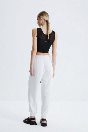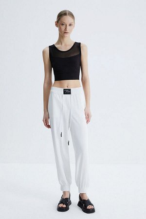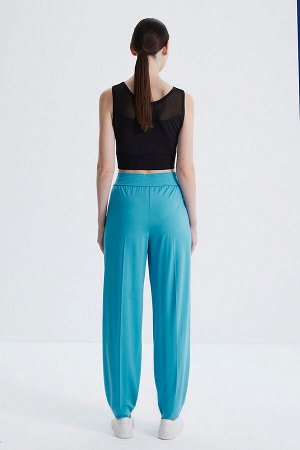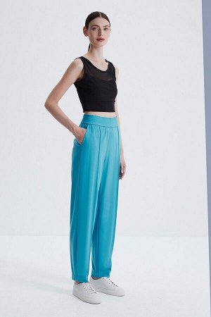 Стильные, слегка зауженные брюки на широком поясе-резинке с отрезной кокеткой по спинке из плотного…