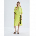 Эффектное платье прямого силуэта с отлетным нагрудным карманом, высокими разрезами в боковых швах и…