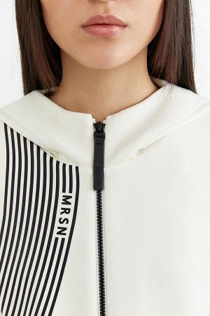 Элегантный жакет полуприталенного силуэта с контрастной фурнитурой из костюмной ткани белого цвета…