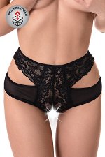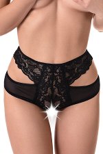 Трусики с открытым доступом. Спереди декорированы кружевной вставкой и маленькими стразами.