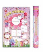 Красочный плакат «С днем рождения» для детей от 1 года до 12 лет. Украсит самый яркий праздник в году, организует минуты веселого заполнения, рисования и украшения, запомнит все важные факты о ребенке (рост, вес, размер ноги, достижения, мечты, крылатые фразы, любимые вещи и др., а также места под фото 10х15 см).