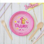 Тарелка бумаж. 6 шт. 18 см. "1 годик" цвет розовый