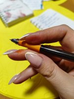 Пишет хорошо, НО красится резинка. Пальцы оранжевые
