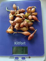 Лук мелкий, большинство луковица не более 1 см. Вес 486 г вместо 500 г. Перебрала и сразу выкинула 90 г (прелый, гнилой, с плесенью), 31 г лука уже
