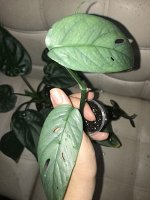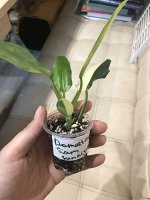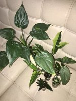 Хорошенький филодендрончик,после пересадки уже выросло два новых листика.Растёт очень медленно,размер листьев 6-7 см