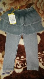 Качество вещей хорошее, все, как на картинке смотрится. Зеленые штанишки-это лосины на широкой резинке, длина для 104 показалась коротковатой - 54см, а джемпер, вроде, соответствует размеру. Получился костюмчик. Ткань типа кулир. Штанцы с юбкой тоже норм, не маломерят - 58см. ткань на футер похожа, как с начесиком чуток, плотная. Большое спасибо организатору за отличную закупку