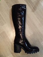 Сапоги просто огонь! Лак бордо, на солнышке особенно яркий, колодка очень удобная как в тапочке нога. На мои 25 см 39 размер с запасом, подъем конечно не на каждую ножку, но на мою сошелся немного походив в обуви под растянулся и стало комфортно. Подклад в сапожках похоже шерстяной тепленький, думаю на нашу зиму пойдет. Очень, очень довольна покупкой, за такие смешные деньги ни чего стоящего в городе не купишь! Жалею что еще ботиночки не заказала маме...( Будем ждать с не терпением очередную закупку! Рекомендую, но читайте отзывы, обувь на полную ножку не пойдет! Дабы не разочаровываться и ругать организатора! Спасибо огромное организатору, отзывчивый ответила незамедлительно на все интересующие вопросы